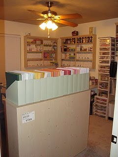 I love this blog because its totally dedicated to craft storage/space but I feel really envious when reading it and that's probably a bad thing but it's so addicting. My hubby just loves when I read it too because I say things like "Look honey at this cool cabinet to store ribbon! You could totally make that. Let's go to Lowes right now to get the supplies!" He is at the point now where he tunes me out and doesn't even acknowledge my weird and spontaneous ideas.